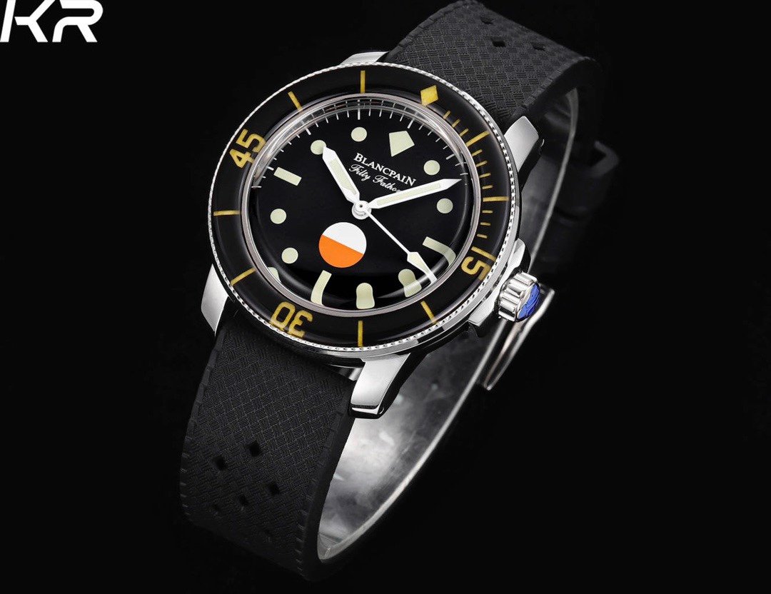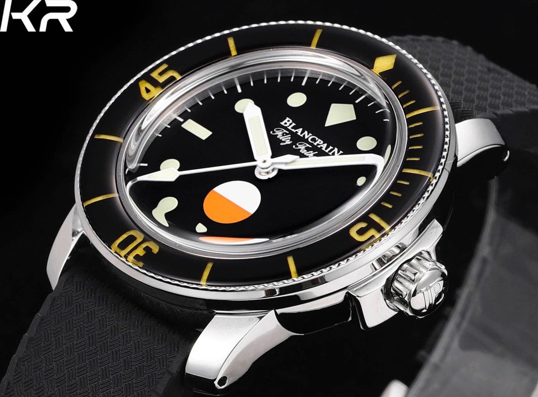 1. Known as the peak of beauty among “Blancpain” by watch enthusiasts! The dial has a black background, and the scales are composed of two colors, aged red and beige, stacked together. The bubble shaped sapphire crystal and sapphire rotating outer ring appear warm and jade like in the sunlight