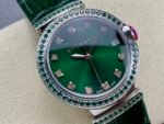 Equipped with an automatic winding mechanical 2892 carved movement, displaying hours, minutes, and seconds, with a diameter case of 33mm set with 88 round brilliant cut diamonds, and a crown set with an egg shaped cut sapphire and a diamond, paired with exquisite needle clasps.