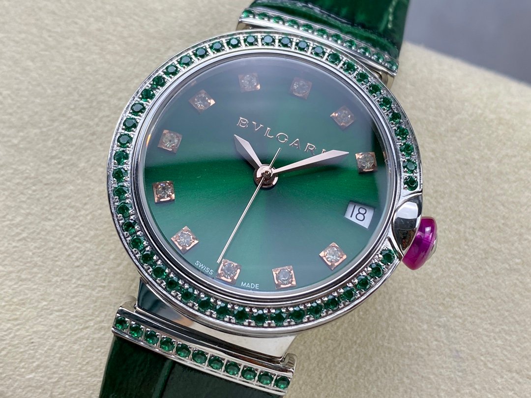 This jewelry watch features a sturdy symmetrical design and simple and pure lines, cleverly combining modern design with BVLGARI’s passion for colored gemstones, praising the timeless beauty of Rome, known as the “Eternal City”, and making people yearn for it.