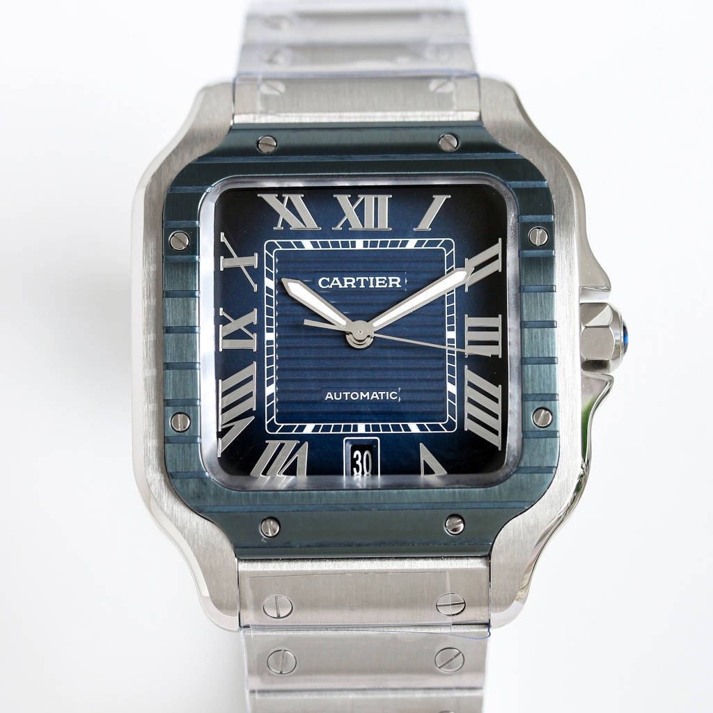 Cartier SANTOS series watches Technical features: 1. Mirror: Sapphire glass watch mirror 2. Strap: Stainless steel bracelet, Italian cowhide strap,