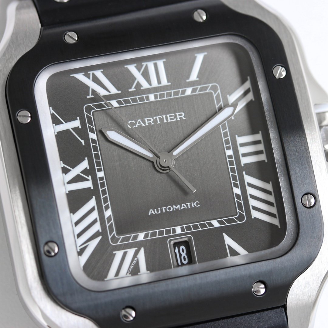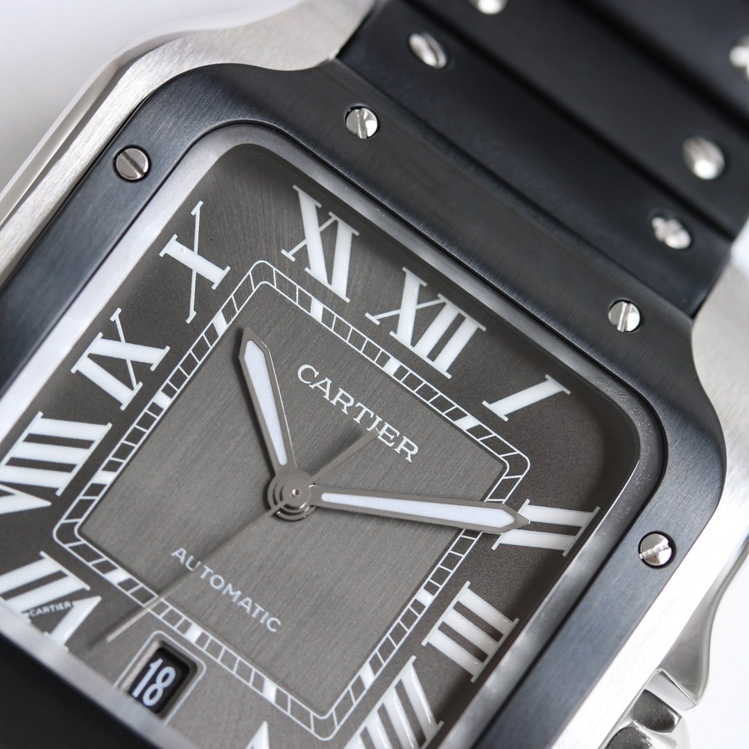 Cartier SANTOS series watches Technical features: 1. Mirror: Sapphire glass watch mirror 2. Strap: Stainless steel bracelet, Italian cowhide strap,
