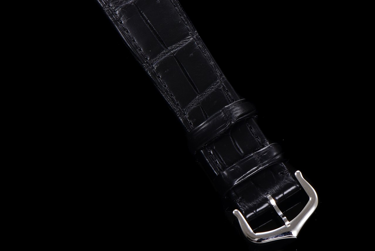Stainless steel diamond studded case with painted dial, paired with American crocodile leather strap and stainless steel,
