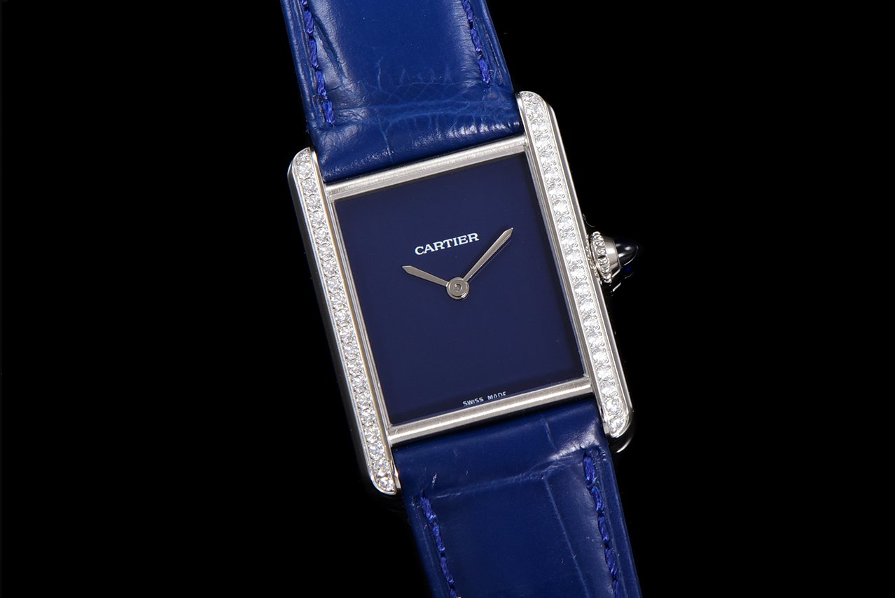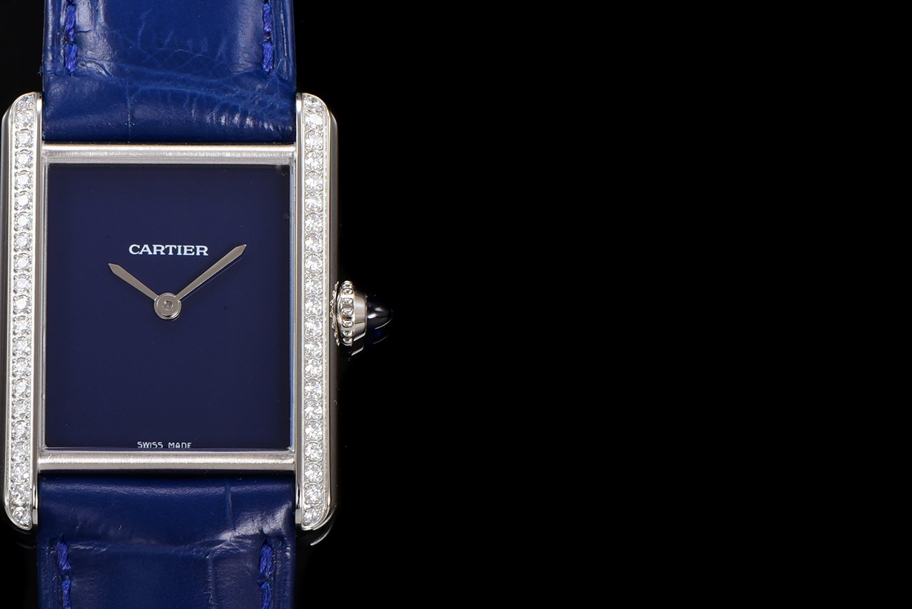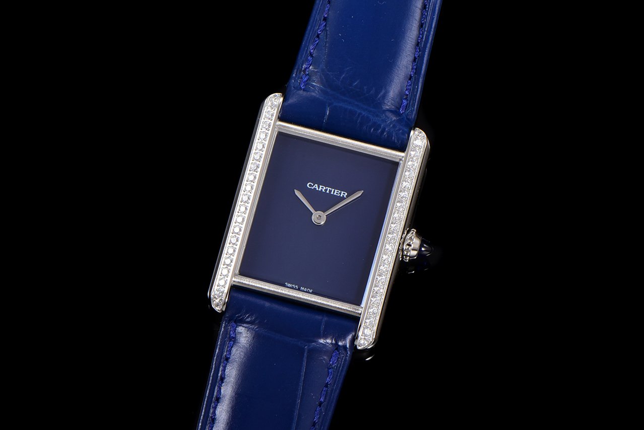 Cartier TANK MUST launches its latest stainless steel diamond studded color dial series.