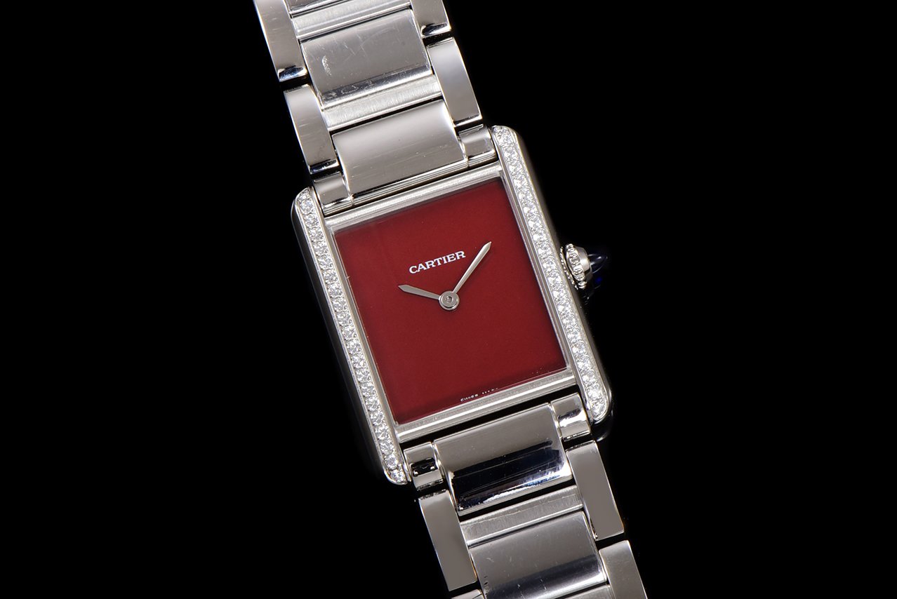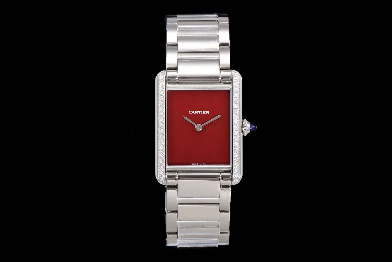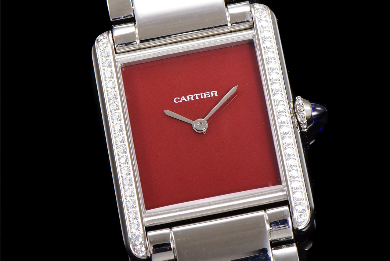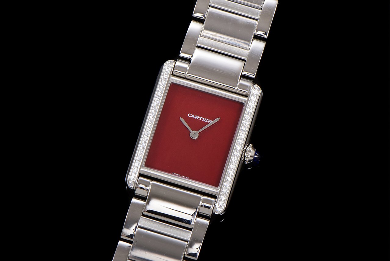 Cartier TANK MUST launches its latest stainless steel diamond studded color dial series. The retro monochrome lacquer dial and diamond