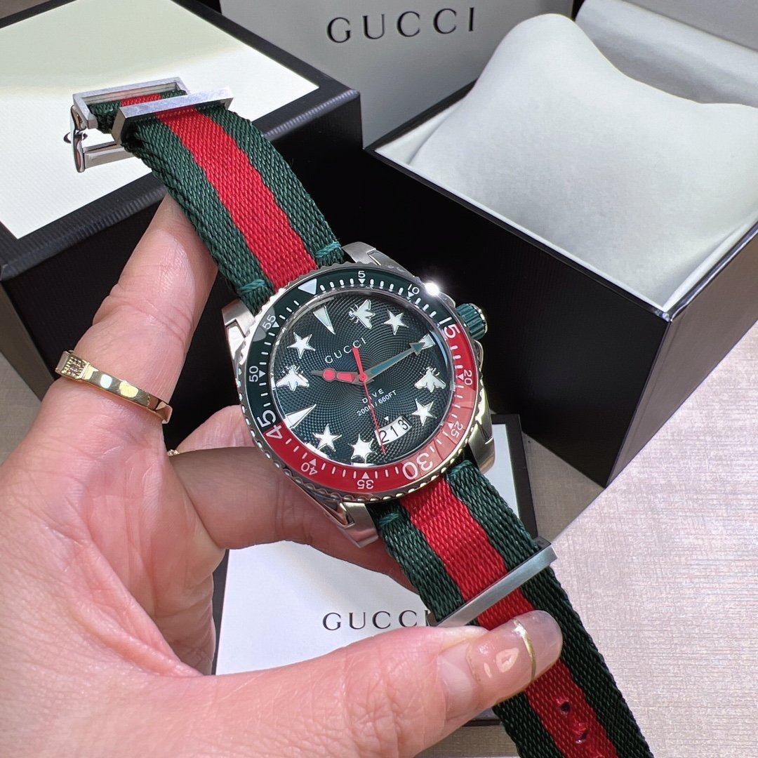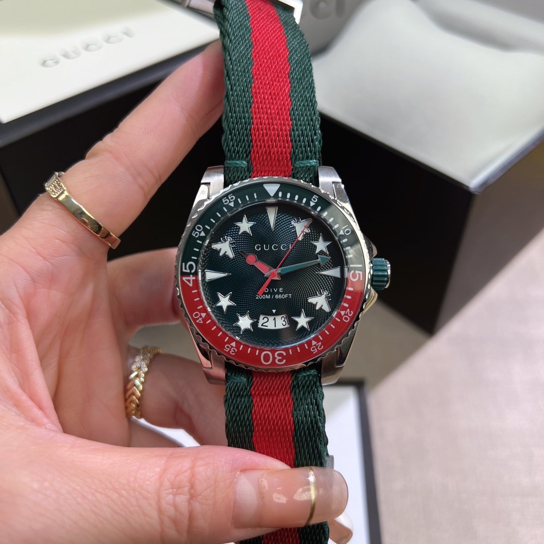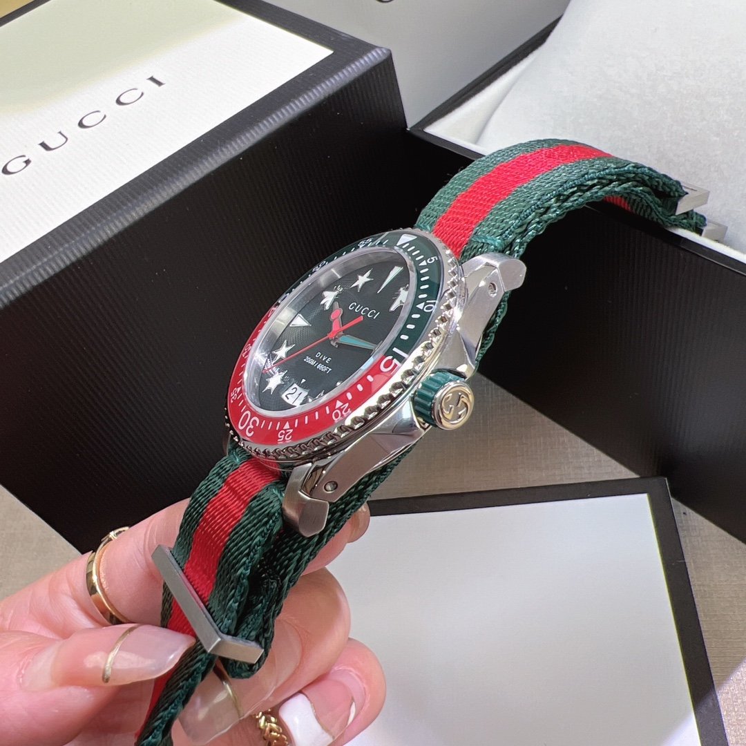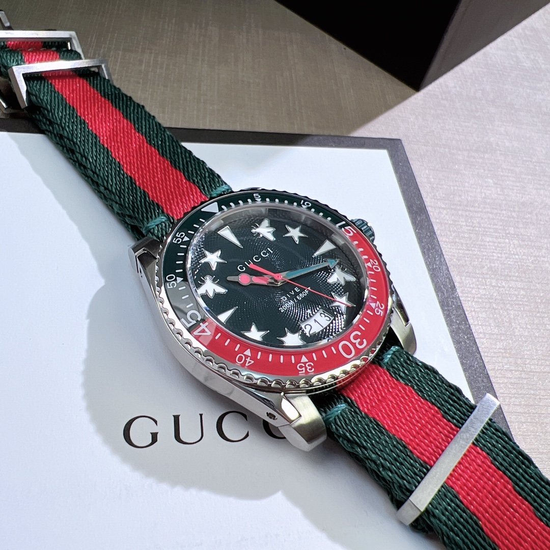 Gucci’s new unisex diving watch, stylish yet atmospheric, suitable for both men and women, with a diameter of 40mm, featuring the brand’s iconic “snake” pattern and luminous display as the dial.