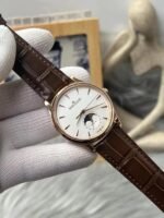 The Jaeger LeCoultre Ultra Thin Master Series Moon Phase Watch features a back through design, a minimalist style, a slim appearance, and a combination of complex functions!
