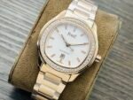 5. The simple three pin watch with a 6-point calendar is elegant and stylish to wear, suitable for any occasion. It is a high-end wristwatch full of sunshine charm, paired with a polished and matte polished stainless steel bracelet, and perfectly matches the beautifully shaped circular case pillow dial.