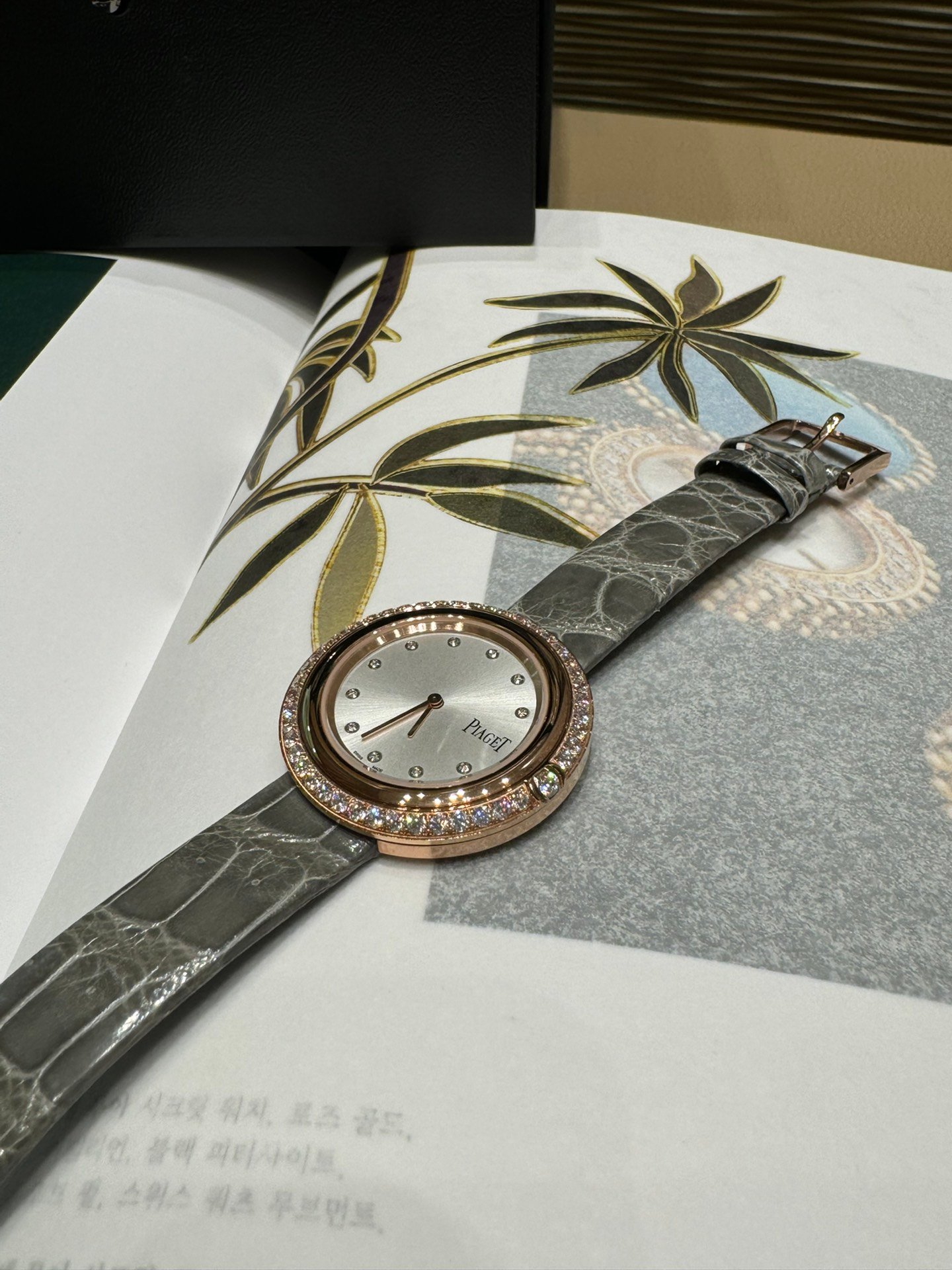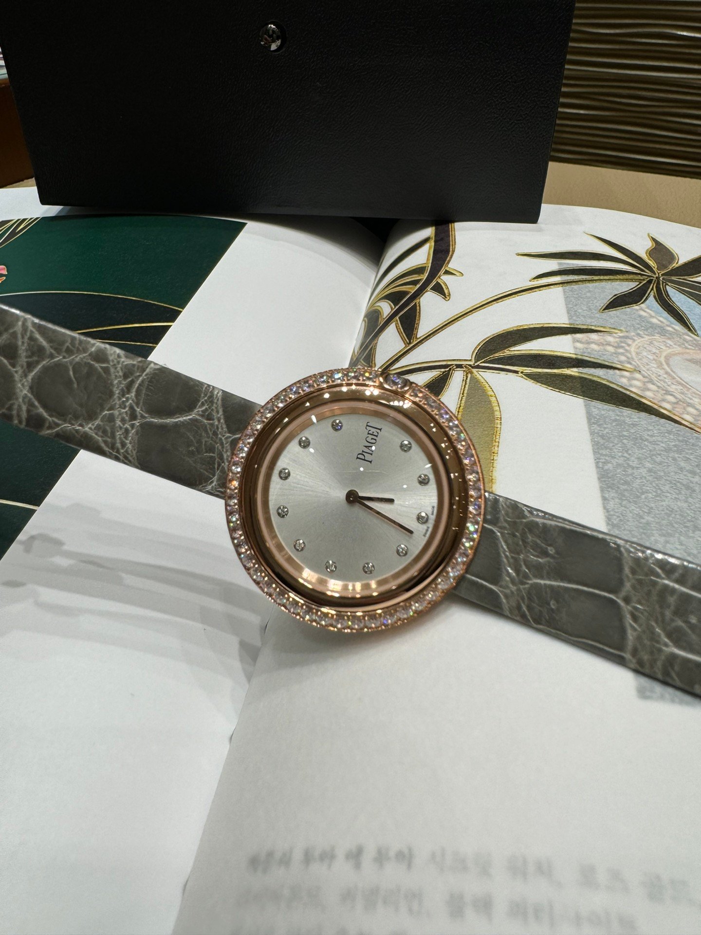 On the outer ring of the dial, there is one large circular diamond and multiple small circular diamonds embedded. These diamonds will shimmer with enchanting brilliance under the illumination of light.